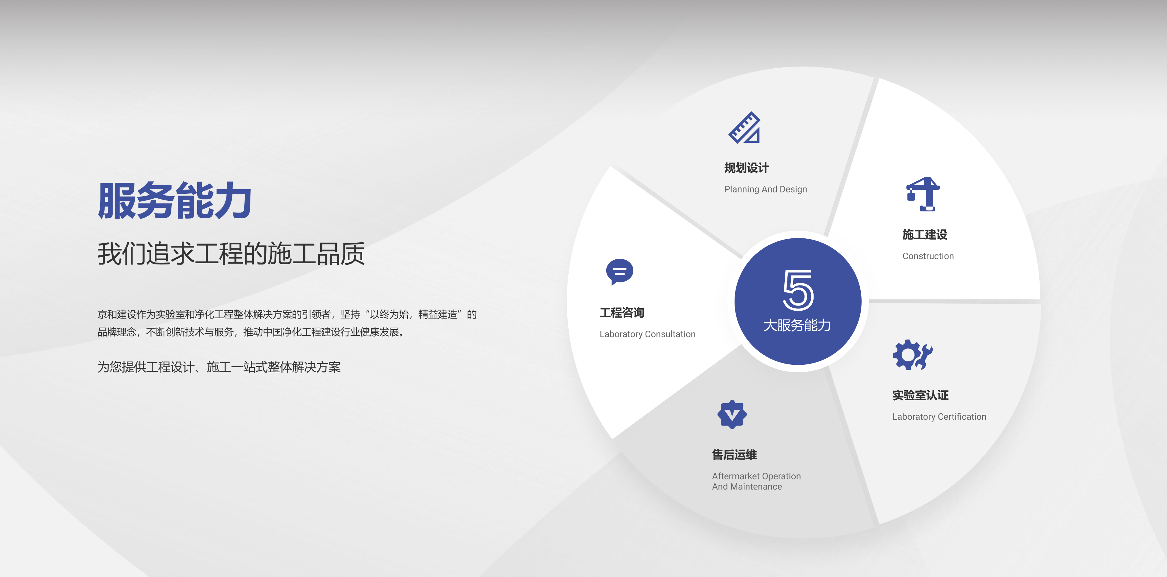 京和建設(shè)作為實(shí)驗(yàn)室和凈化工程整體解決方案的引領(lǐng)者,堅(jiān)持“以終為始,精益建造”的品牌理念,不斷創(chuàng)新技術(shù)與服務(wù),推動(dòng)中國(guó)凈化工程建設(shè)行業(yè)健康發(fā)展。